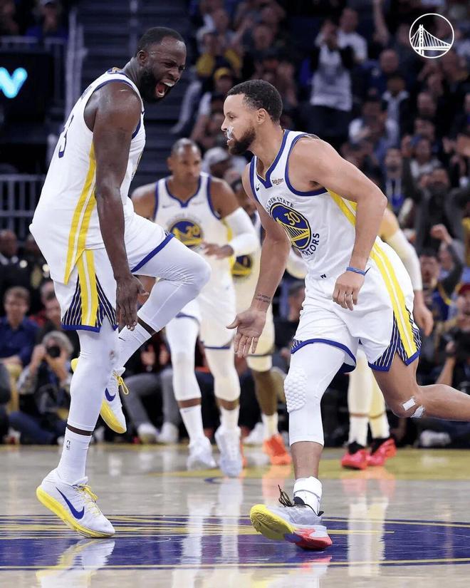 勇士首发五人轮番在外线建功,特别是中锋波斯特弧顶连中两记三分,全队以超五成命中率轰下33分。
