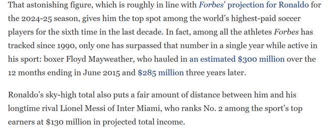 个别联赛规则不同:例如梅西按2025自然年的球场收入计入;